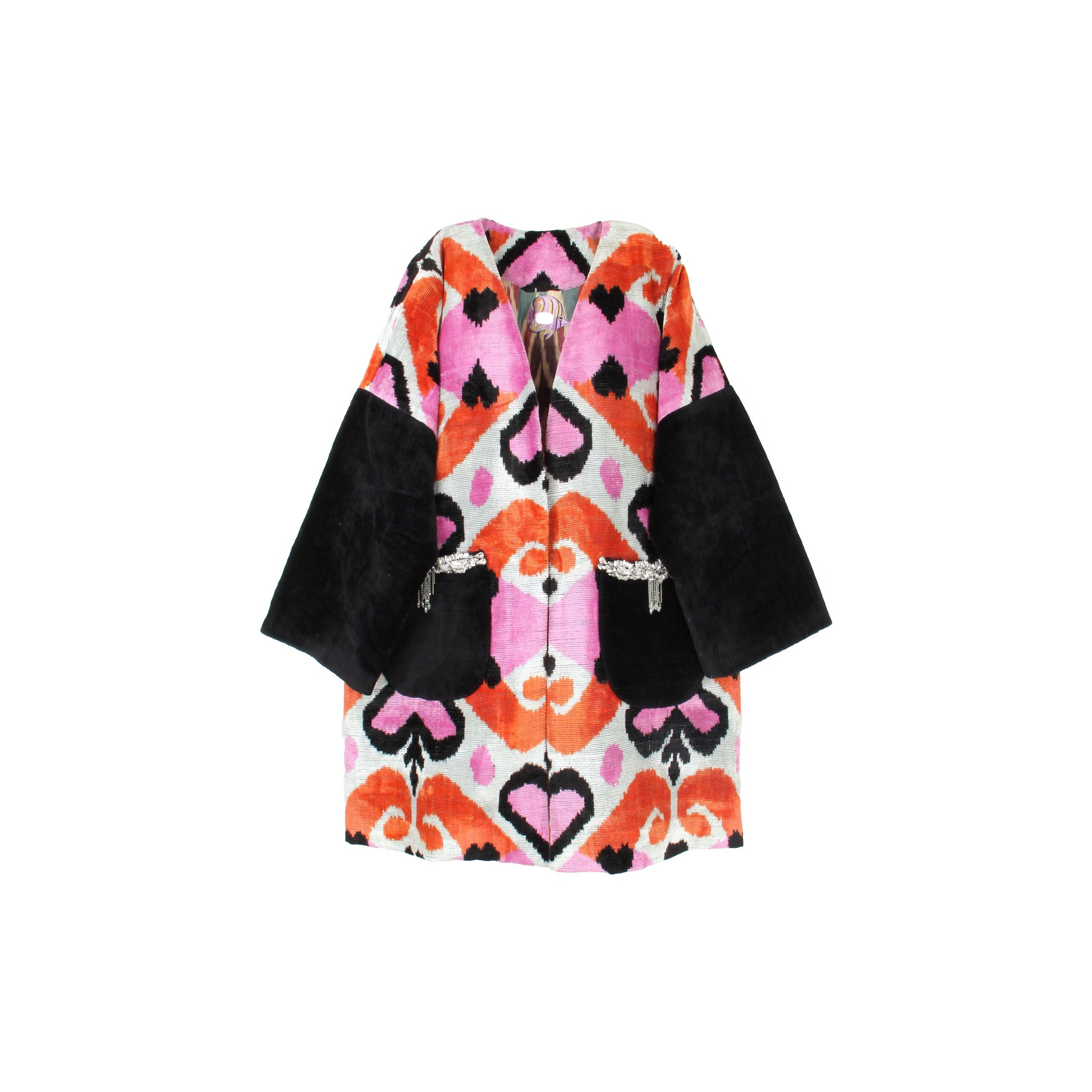 Crafted from luxurious velvet and finished with an ikat-lined interior for subtle distinction, the jacket offers structure, comfort, and a refined finish. Its timeless construction and elevated detailing make it a versatile statement—effortlessly transitioning from refined daytime settings to elegant evening engagements.