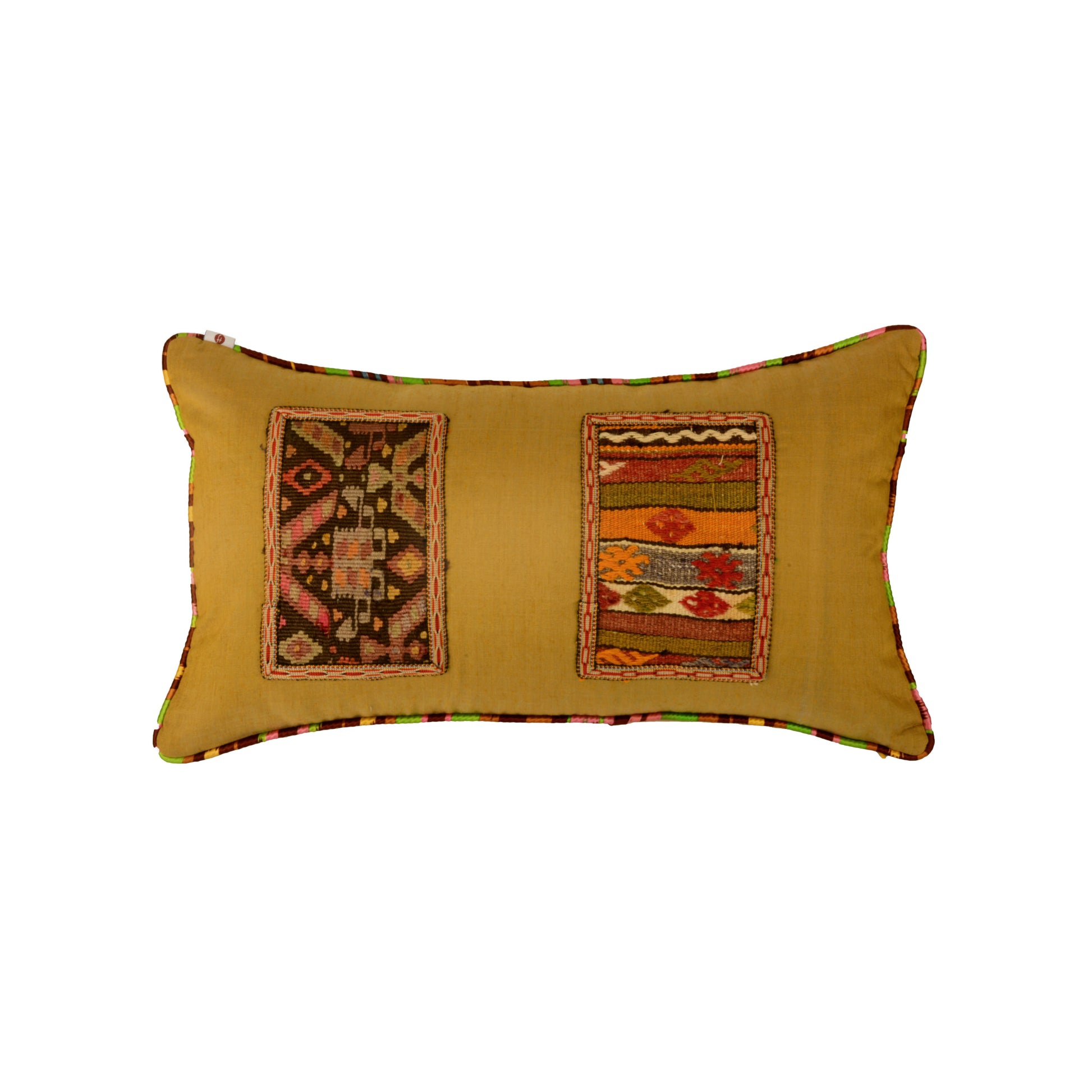 Les motifs traditionnels des tapis de Patagonie sont associés à des bordures colorées. Le jaune safran est la couleur principale du motif.