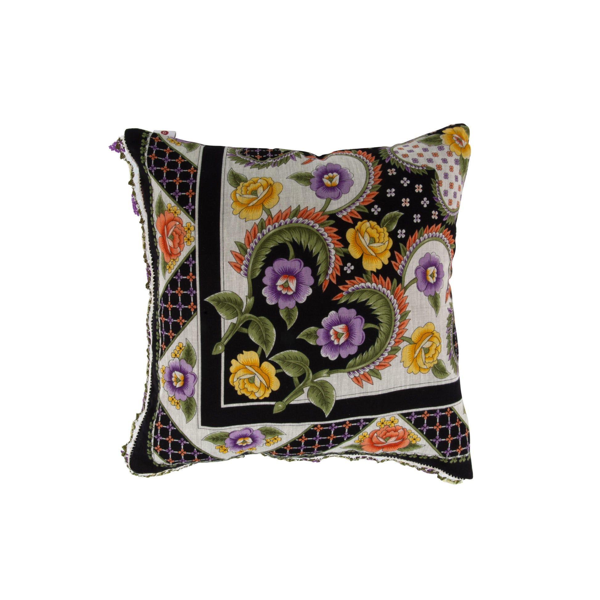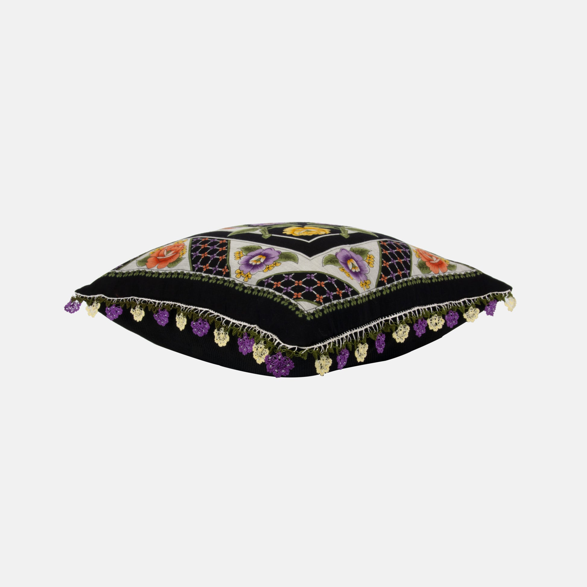 Each of the handmade Haral Design pillows features a hidden zipper, and those with charm details use silk embroidery threads.