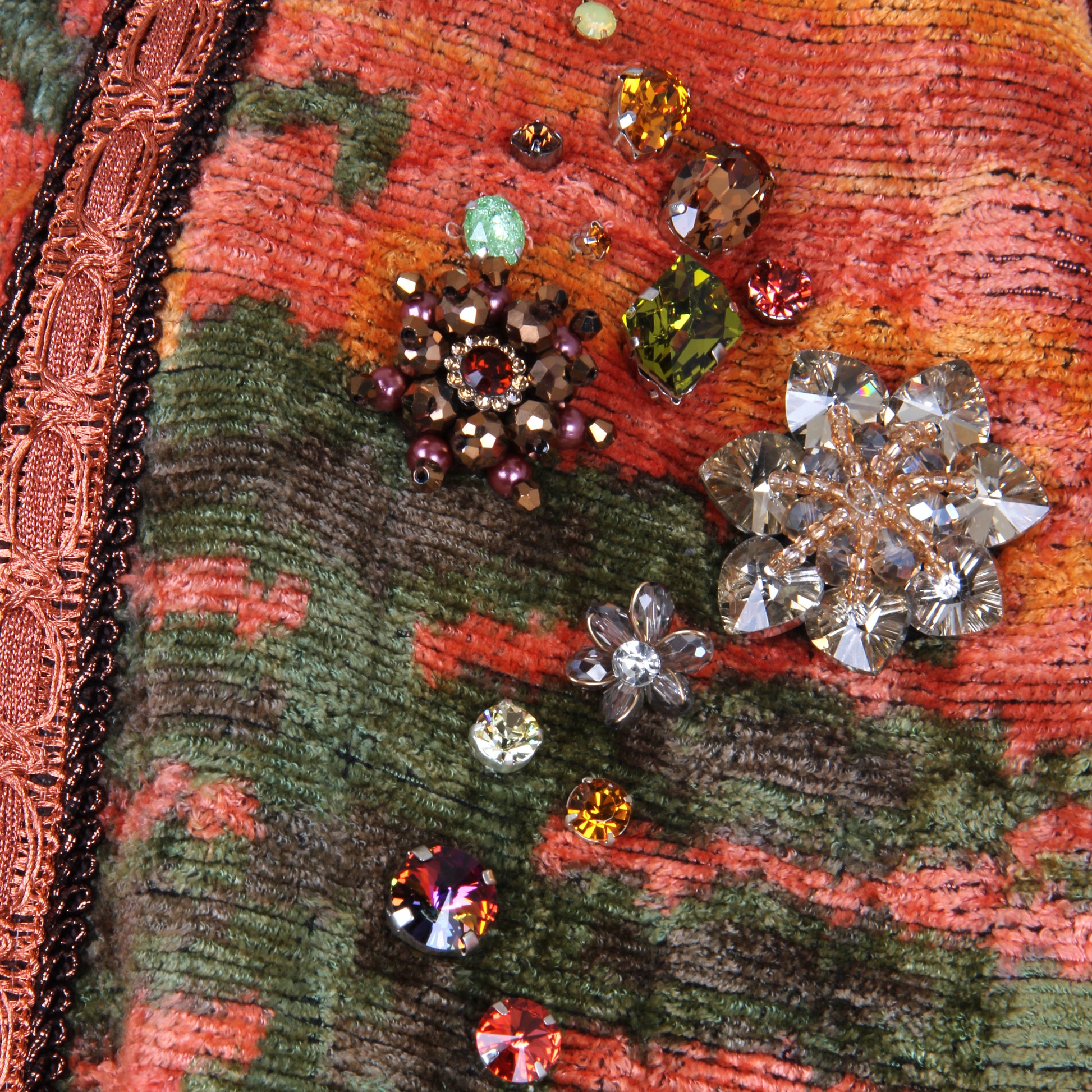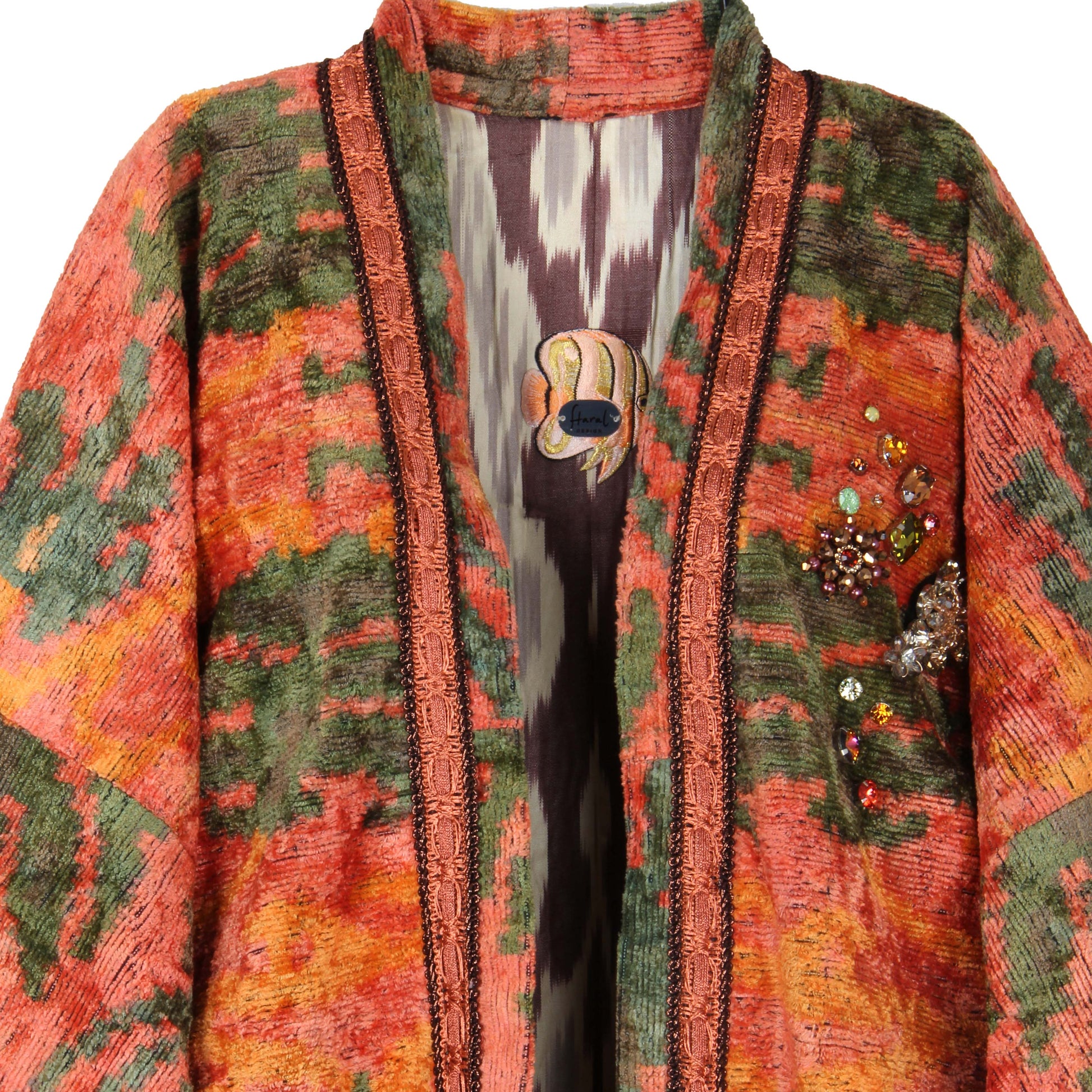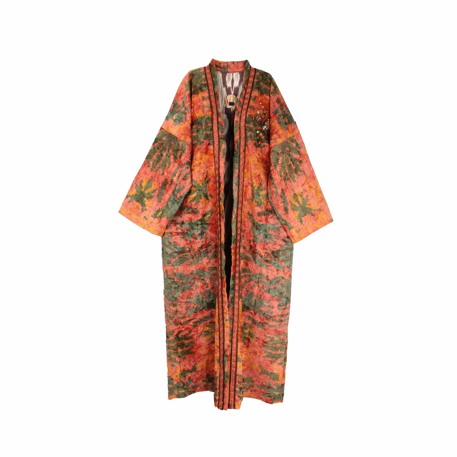 This one-of-a-kind velvet kaftan features refined handcrafted detailing, enhanced by elegant Swarovski crystal embellishments and an ikat-lined interior. Merging heritage craftsmanship with a contemporary silhouette, the design offers a sophisticated expression of modern luxury.