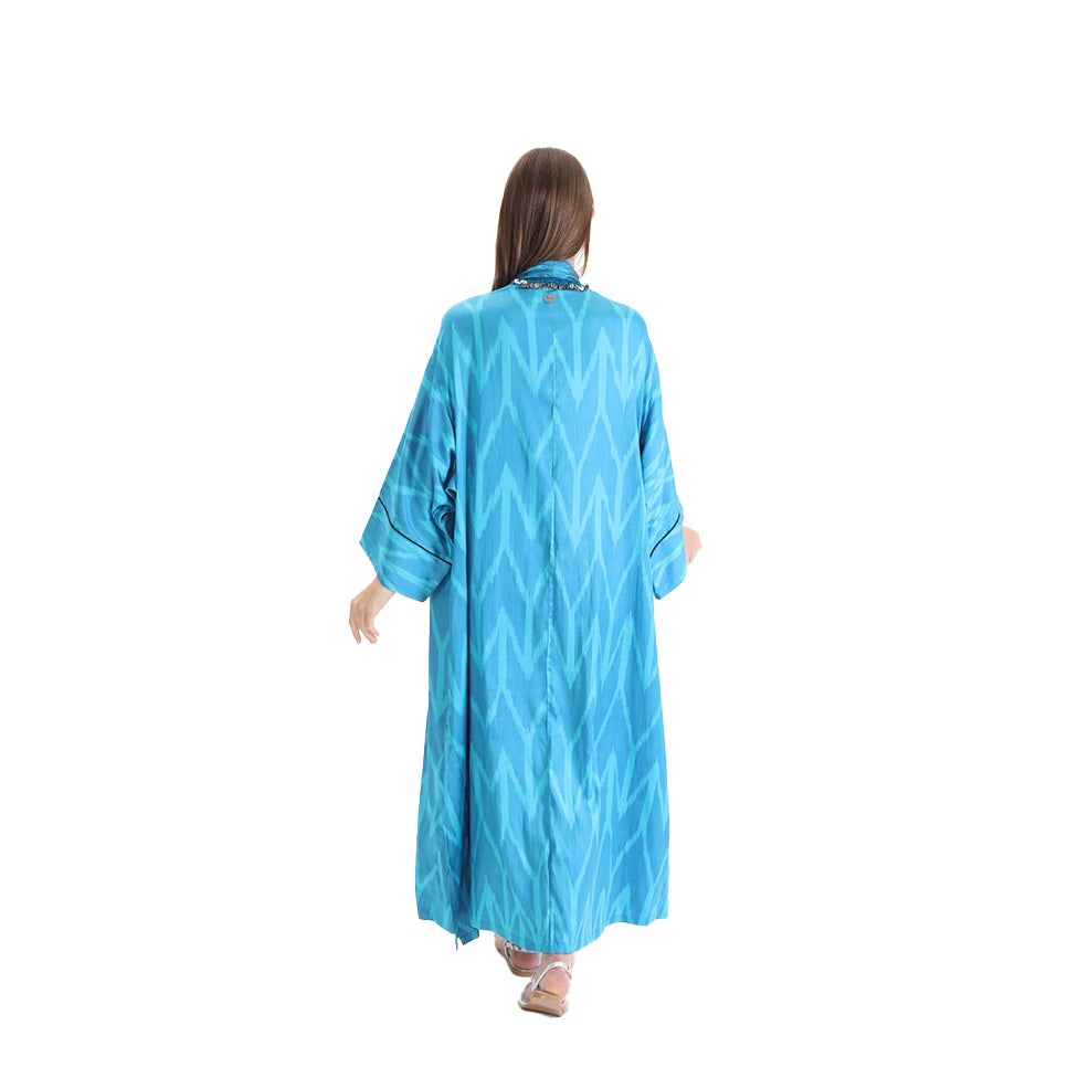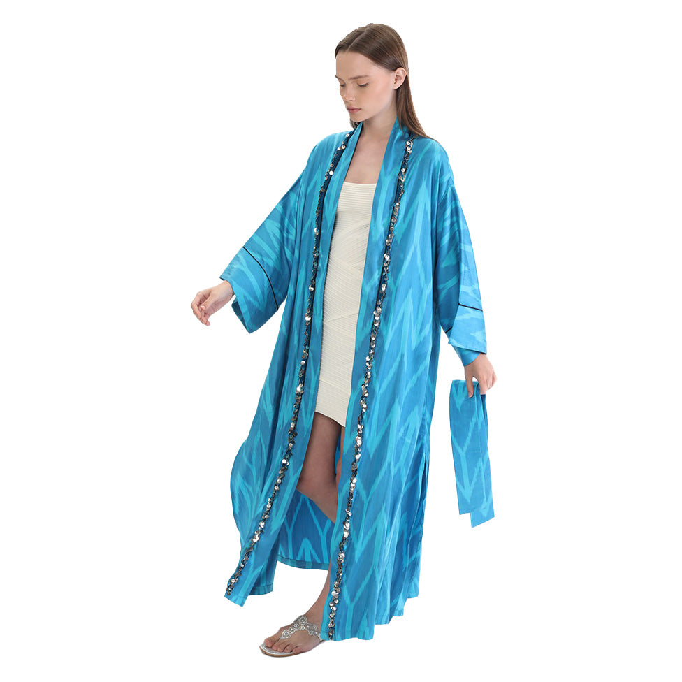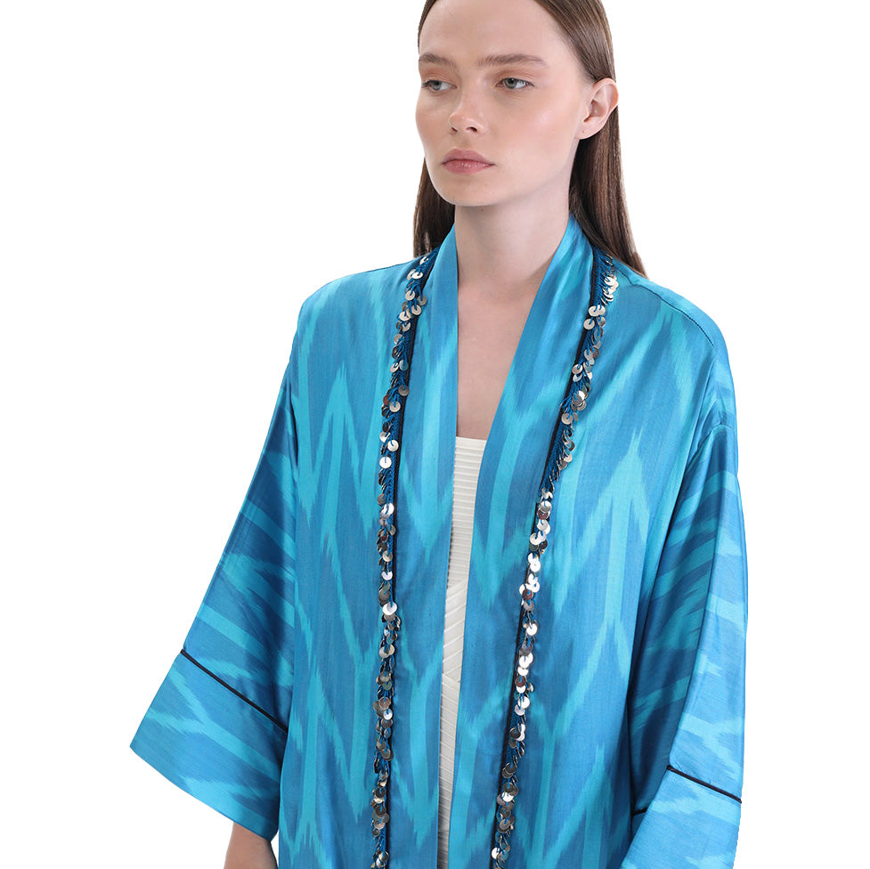 This exquisite design is made from authentic handwoven silk ikat fabric, adorned with delicate handcrafted details. Each pattern reflects the artistry and cultural heritage of traditional weaving techniques, making this piece truly unique.