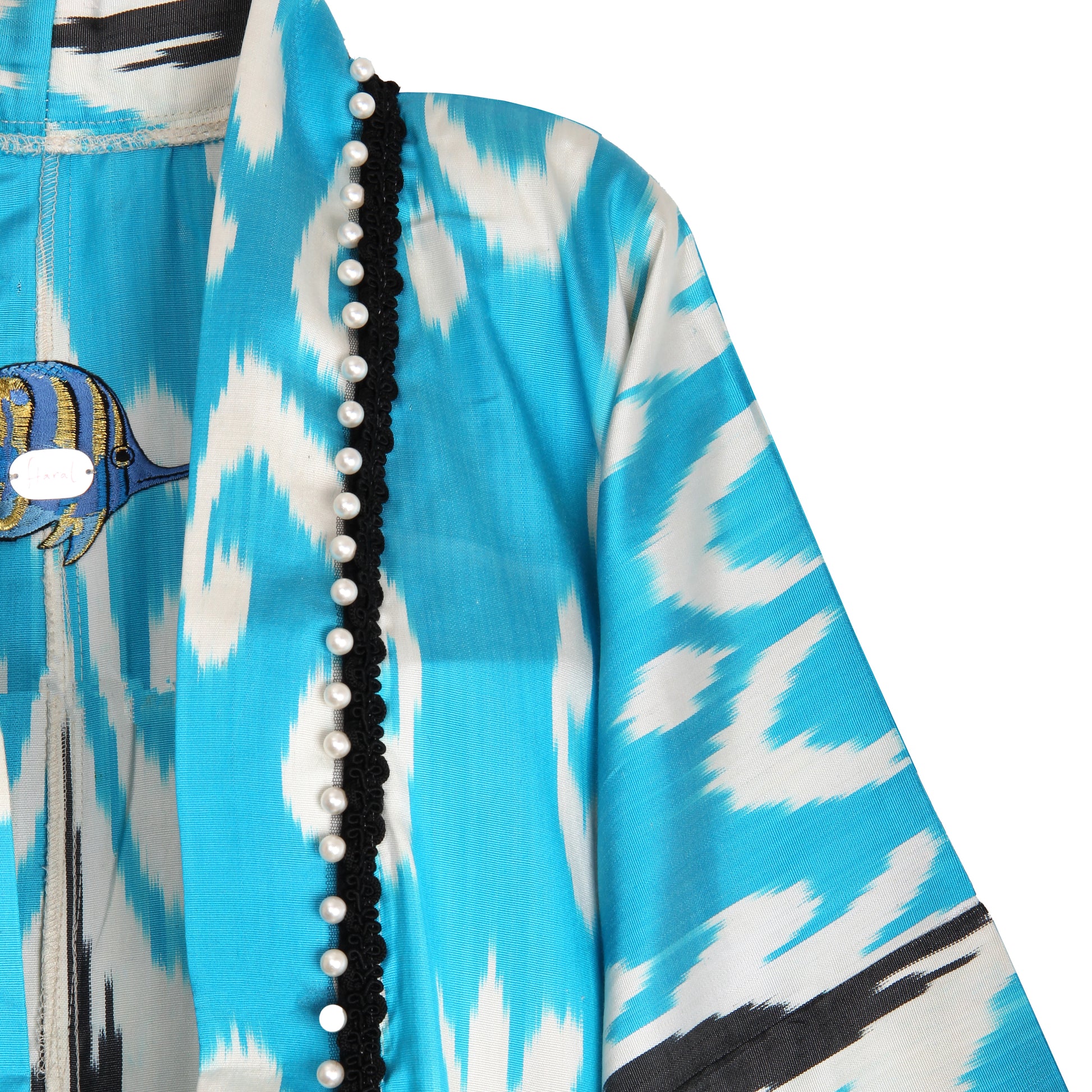 Timeless, refined, and artfully designed, this handcrafted silk ikat kaftan stands out as a truly unique piece.