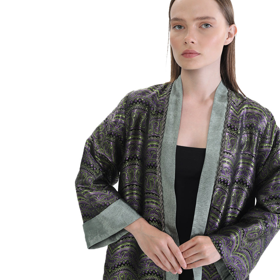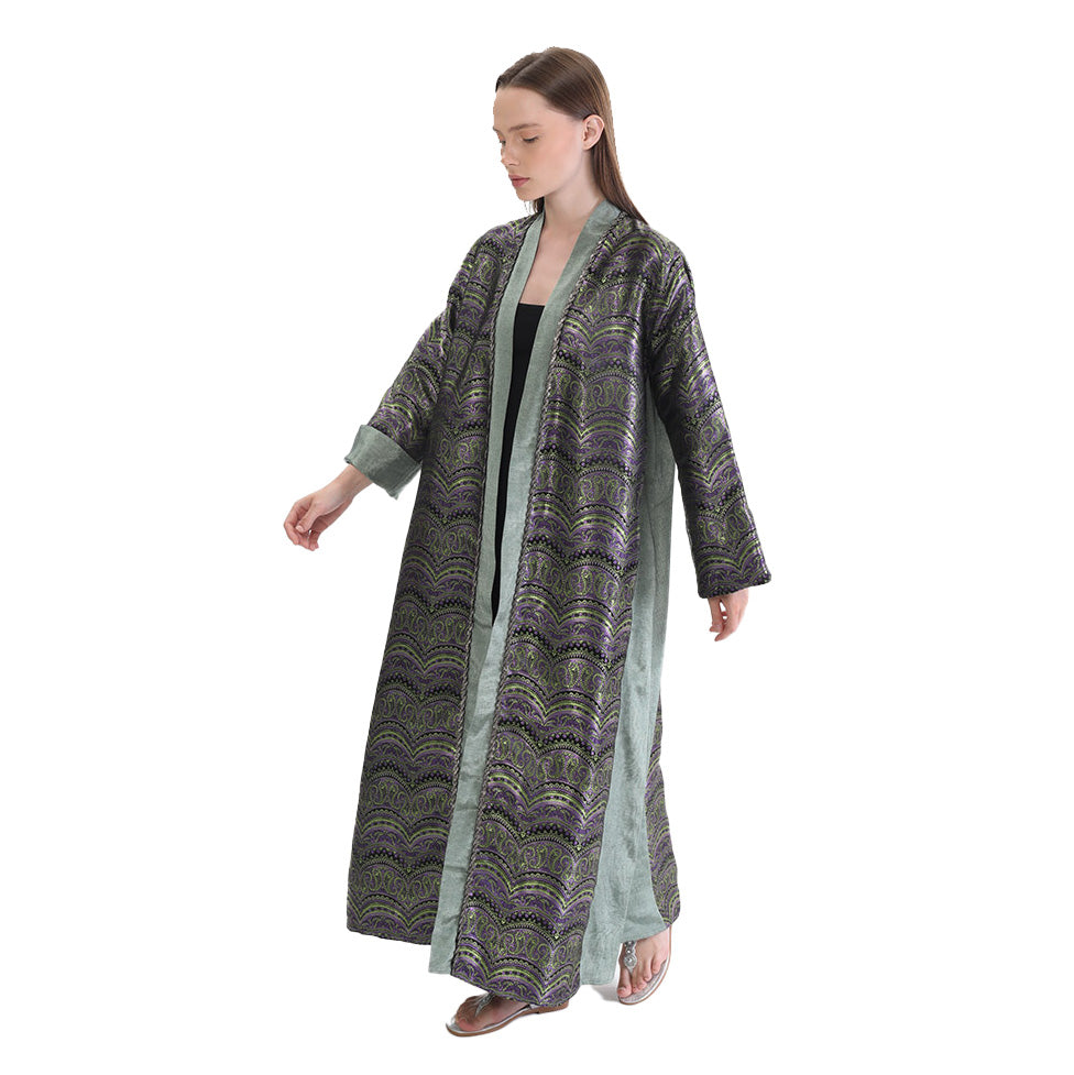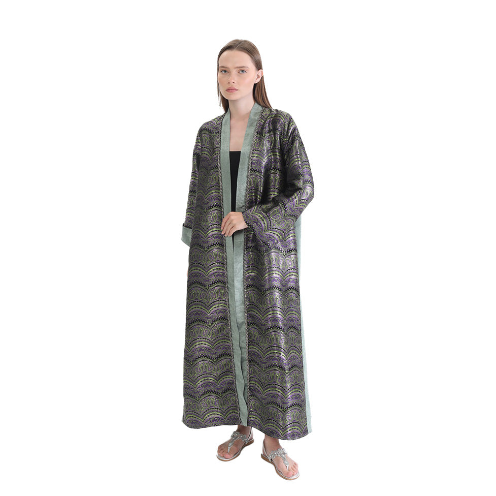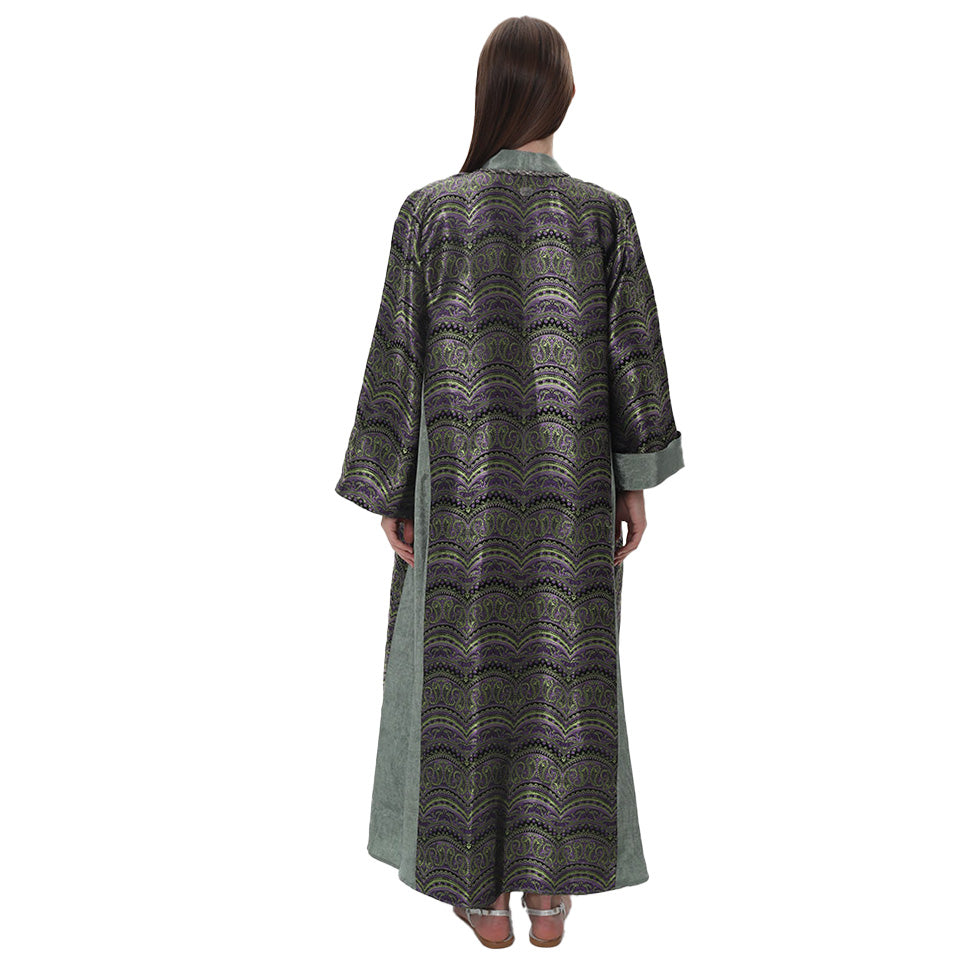 Handcrafted brocade kaftan adorned with artisanal details, designed using Kutnu fabric woven exclusively in Gaziantep.
